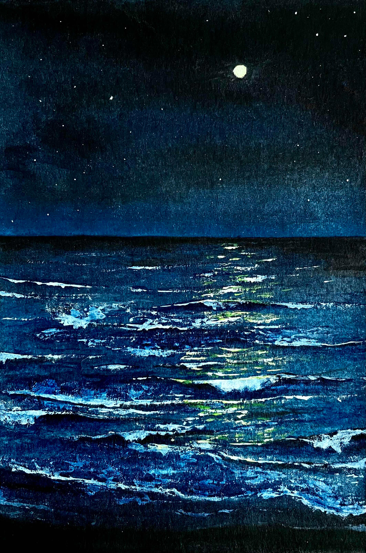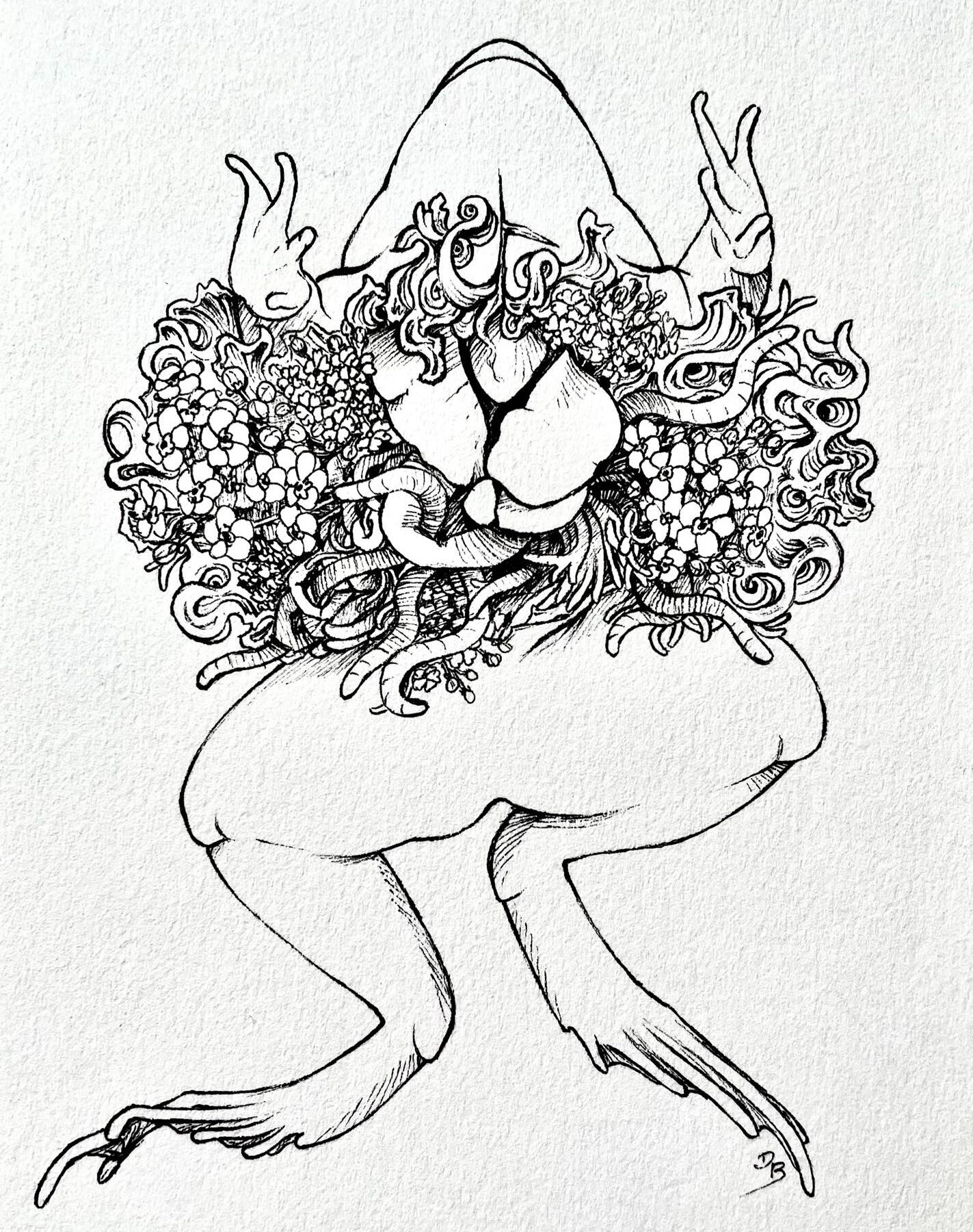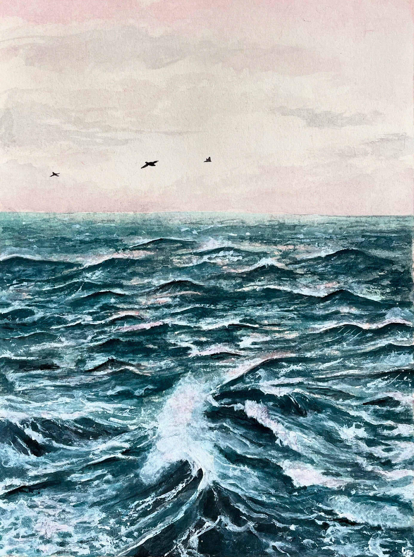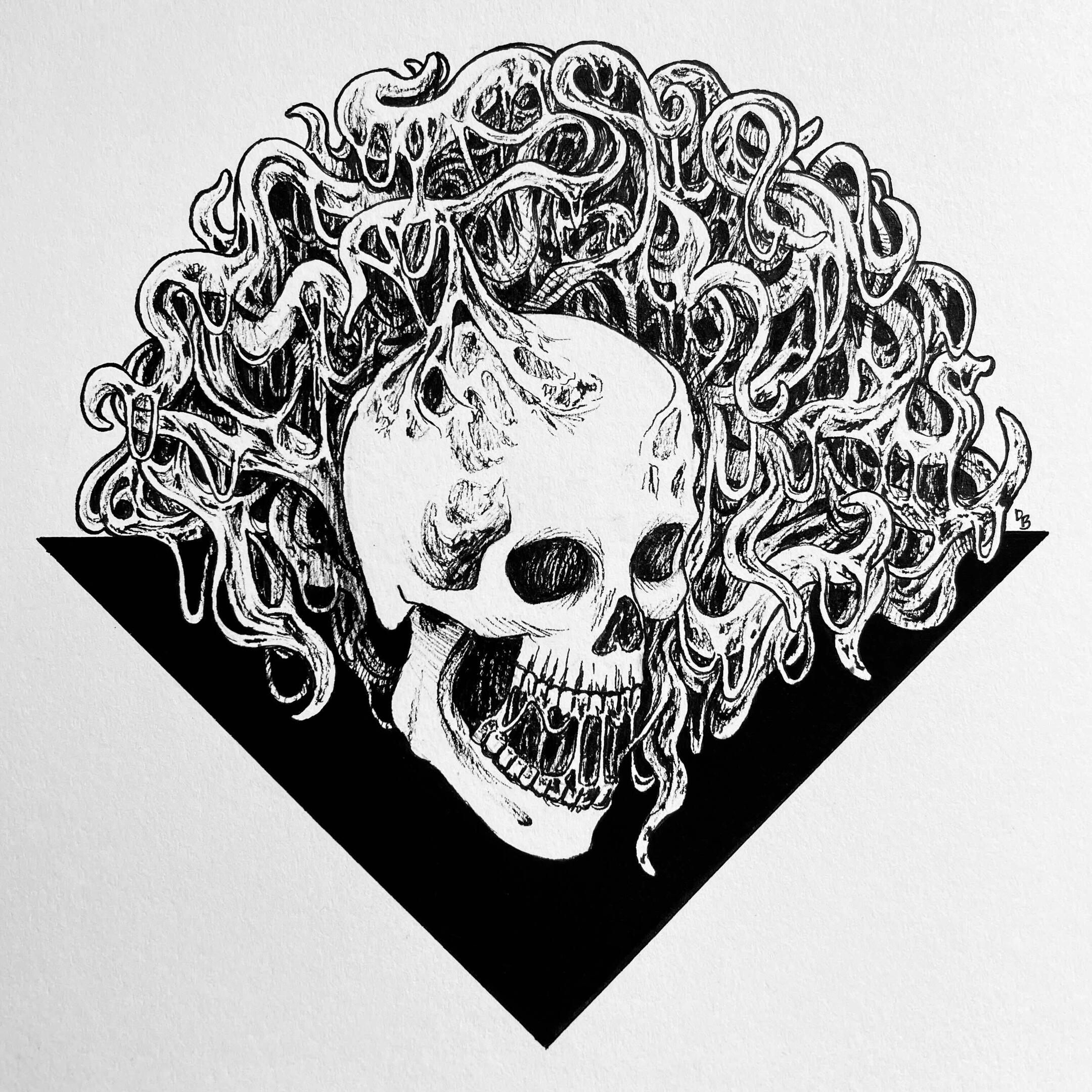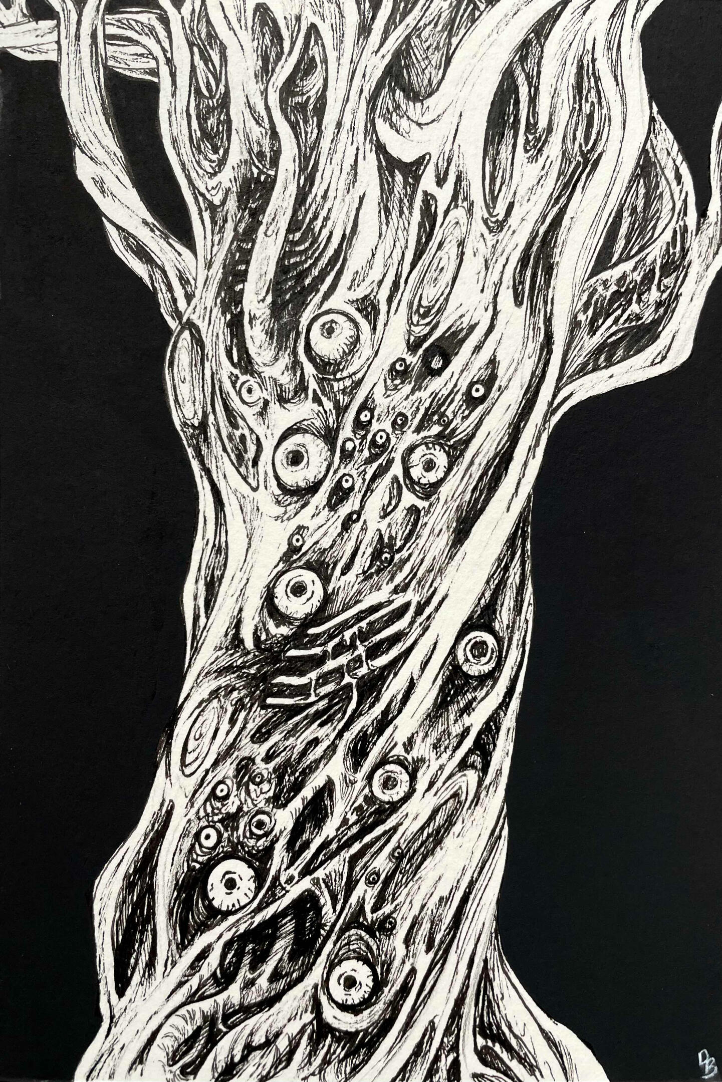 Visual art has always been my favorite way of realizing my bountiful imagination and sharing subjects that I find beautiful through the distinct voice that my utensil resonates. In many of my watercolor and acrylic paintings, I strive to capture the beauty of the sea from the everchanging waves to the beautiful shimmer and hues that the sky bestows them. Through my ink drawings, I use intricacy to explore macabre and botanical subjects, from a knotty tree to a human skull with slimy tentacles writhing from within.