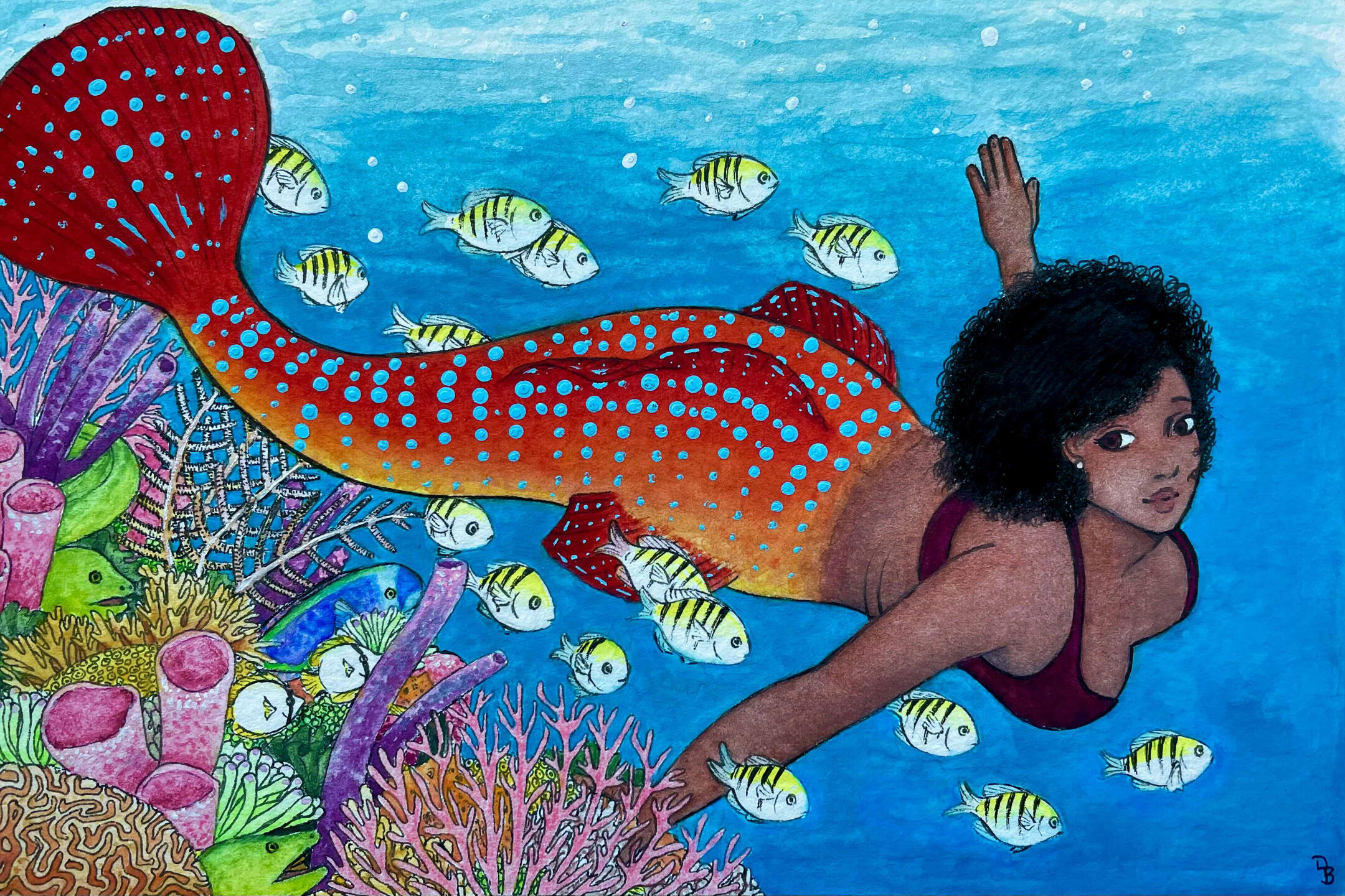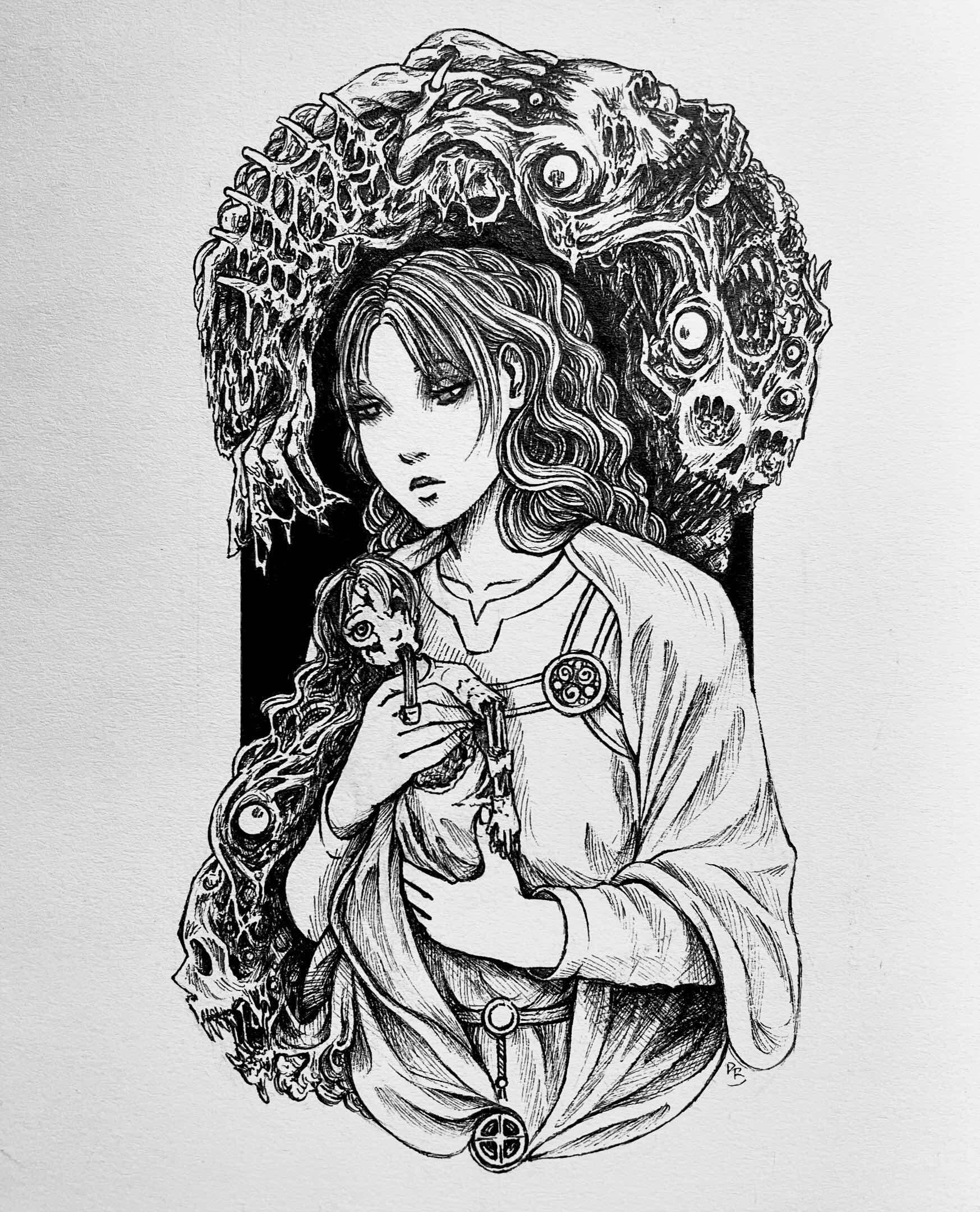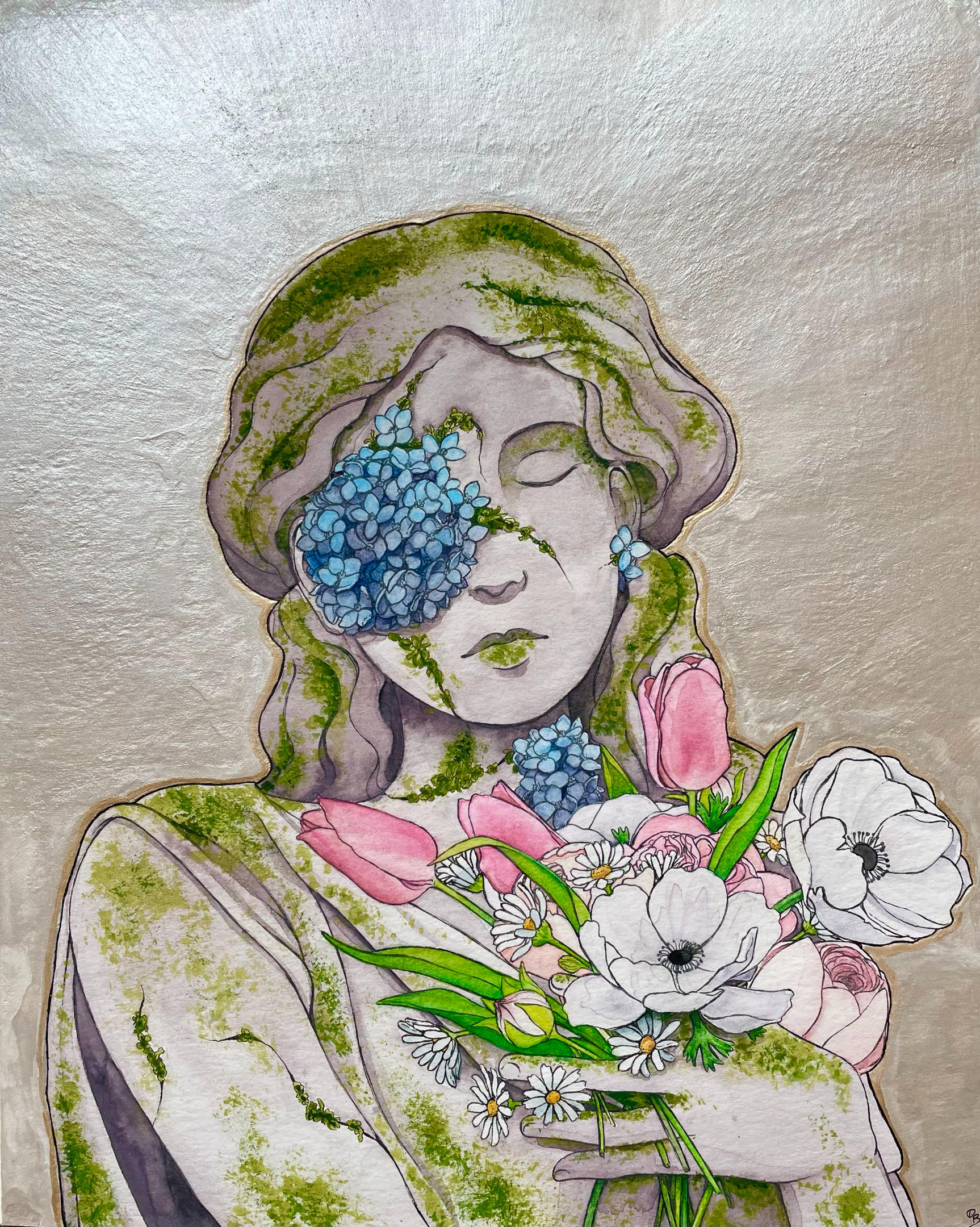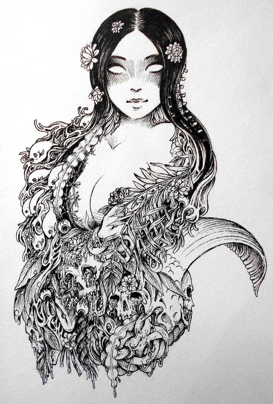Visual art has always been my favorite way of realizing my bountiful imagination and sharing subjects that I find beautiful through the distinct voice that my utensil resonates. In many of my watercolor and acrylic paintings, I strive to capture the beauty of the sea from the everchanging waves to the beautiful shimmer and hues that the sky bestows them. Through my ink drawings, I use intricacy to explore macabre and botanical subjects, from a knotty tree to a human skull with slimy tentacles writhing from within.